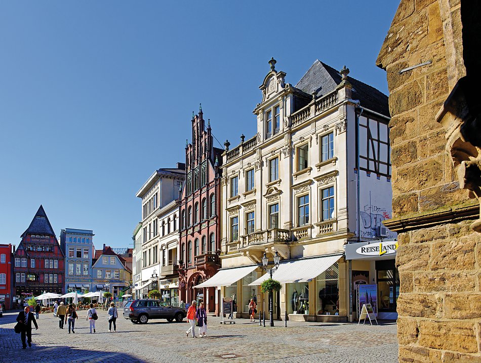 Am Morgen bringt uns der Bus nach Bad Salzuflen, wo Sole und Geschichte die Luft erfüllen. Schon beim Start lohnt sich ein Halt am imposanten Erlebnisgradierwerk. Feiner Salznebel liegen in der Luft – einmal tief durchatmen und die Radtour kann beginnen. Durch die beeindruckende Altstadt von Bad Salzuflen, mit ihren prächtigen Patrizier-Häusern und kunstvoll verzierten Fachwerkbauten, kommen wir in die Werre Aue und kurz darauf schon, in die Hansestadt Herford ie Altstadt von Herford beeindruckt mit liebevoll restaurierten Fachwerkhäusern, kleinen charmanten Plätzen und dem imposanten Münster aus dem 12. Jahrhundert. Einen faszinierenden Kontrast dazu bildet das MARTa Herford, dessen außergewöhnliche Architektur von Frank Gehry moderne Kunst und zeitgenössisches Design eindrucksvoll vereint. Weiter geht es durch die sanfte Ravensberger Landschaft entlang der Werre, bis wir anderen Ufer die Kurstadt Bad Oeynhausen erreichen. Im Zentrum der Stadt erwartet uns keine klassische Altstadt, sondern ein weitläufiger Kurpark, der mit seinen historischen Bauwerken und alten Baumbeständen die glanzvolle Bäderarchitektur der Stadt erlebbar macht und am Inowroclaw-Platz laden zahlreiche Cafés zu einer Pause ein. Am Zusammenfluss von Werre und Weser folgen wir der Weser nach Porta Westfalica und dem über alles wachendem Kaiser-Wilhelm-Denkmal. Haben wir, wenn jemand mag, den Aufstieg bewältigt, werden wir mit weiten Ausblicken auf den breiten Strom und die Mittelgebirgslandschaft von Wiehen - und Wesergebirge belohnt. Unser Hotel in der über 1200-jährigen Stadt Minden heißt uns herzlich willkommen und nach dem gemeinsamen Abendessen hält der historische Stadtkern einiges an Baudenkmäler bereit.