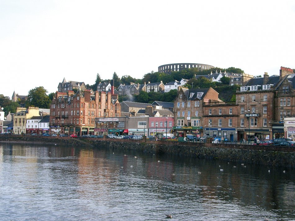 Heute fahren wir von North Ballachulish nach Oban, immer entlang des Loch Linnhe. Der beeindruckende Meeresarm zieht sich rund 50 Kilometer an der schottischen Westküste entlang, und der Radweg schmiegt sich immer wieder direkt an sein Ufer. Auf der gegenüberliegenden Seite ragen die massiven Gipfel der Creach Bheinn aus dem dunklen Wasser empor und prägen die Szenerie. Bei Duror verändert sich das Landschaftsbild: Die Küste bleibt zurück, und der Weg führt durch offenes Moorland, geprägt von alten Eichen, Birken und Heide. Wenig später kehren wir wieder ans Meer zurück, wo seit dem frühen 14. Jahrhundert Castle Stalker auf einer kleinen Felseninsel im Loch Linnhe thront. Vor den Hügelketten der Isle of Mull bildet die Burg eine Kulisse von besonderer Eindrücklichkeit. Über die Connel Bridge mit den Falls of Lora, spektakulären Stromschnellen, die durch die Gezeiten und einen Felsvorsprung entstehen, erreichen wir schließlich Oban. Das Meer schiebt sich hier sanft in die geschützte Bucht, während die Inseln Mull, Kerrera und Lismore wie stille Wächter am Horizont stehen. Der Hafen lebt vom leisen Kommen und Gehen der Fähren, und über den bunten Häusern thront der McCaig’s Tower, der der Stadt eine fast mediterrane Silhouette verleiht und weite Blicke über das Wasser öffnet. Mitten in dieser maritimen Atmosphäre liegt die Oban Distillery, eine der ältesten Schottlands. Ihr Whisky spiegelt die Umgebung wider: mild und süß wie das Highland-Moor, mit einem Hauch von Rauch und der salzigen Brise des Atlantiks. Wer mag kann diesen Tag mit einem oder ein paar Drams Whisky abschließen, denn von Oban geht es mit dem Bus zurück nach Fort William.